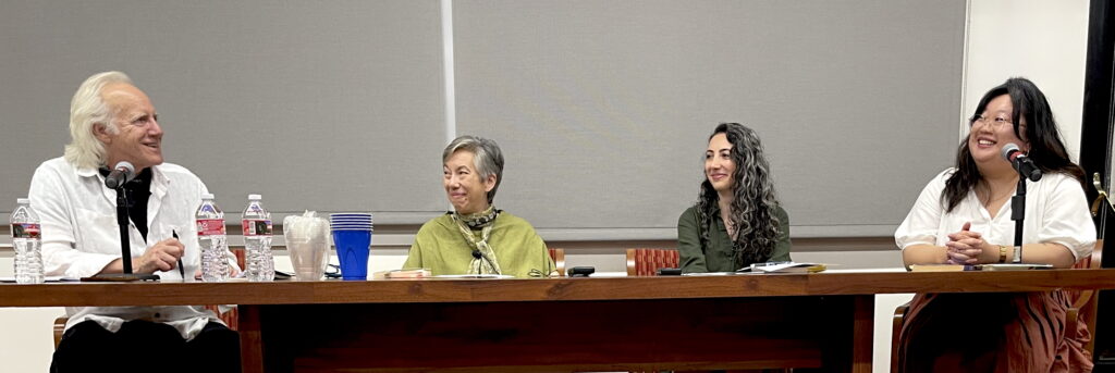 On that astonishing evening, we filled the hall to the bursting point, with Another Look friends sitting on the floor and crowding the doorways. The size of the event had surprised even us, and necessitated a move to the more spacious Bechtel Conference Center in Encina Hall. Now we’re changing venues again. COVID inaugurated the era of zoom: now Another Look offers hybrid events – a virtual presence for those who live across the country, world, or who, for other reasons, have to stay close to home, along with our traditional in-person events, where you can chat with the panelists and enjoy the energy of a lively literary discussion.