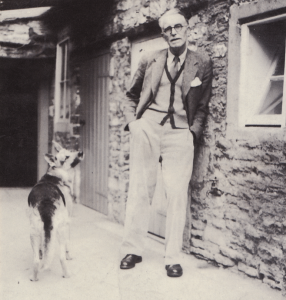 “I would love to come and see you this year, and love, of course, to bring my bitch, but I don’t know whether I should impose her on you. … I expect I could control her over the sheep alright. But I fear she may defecate in your house the first night, for the excitement of journeys always upsets her stomach. Ordinarily she never goes in the night, but if she should happen to want to here, there is a terrace for her to walk out onto; but on the last two occasions that I have taken her to friends in the country, I fear she has let fly in my bedroom – on the first night; for the rest of the time she was alright. On the first of these occasions it was my fault; she woke me up and did her best, poor girl, to get me to take her into the garden; but hearing the cat mewing there, I mistook her motives and let her down. What happened at Siegfried’s [Sassoon’s] later I do not know; I was worn out when I got there and don’t know whether she tried to wake me or not.
